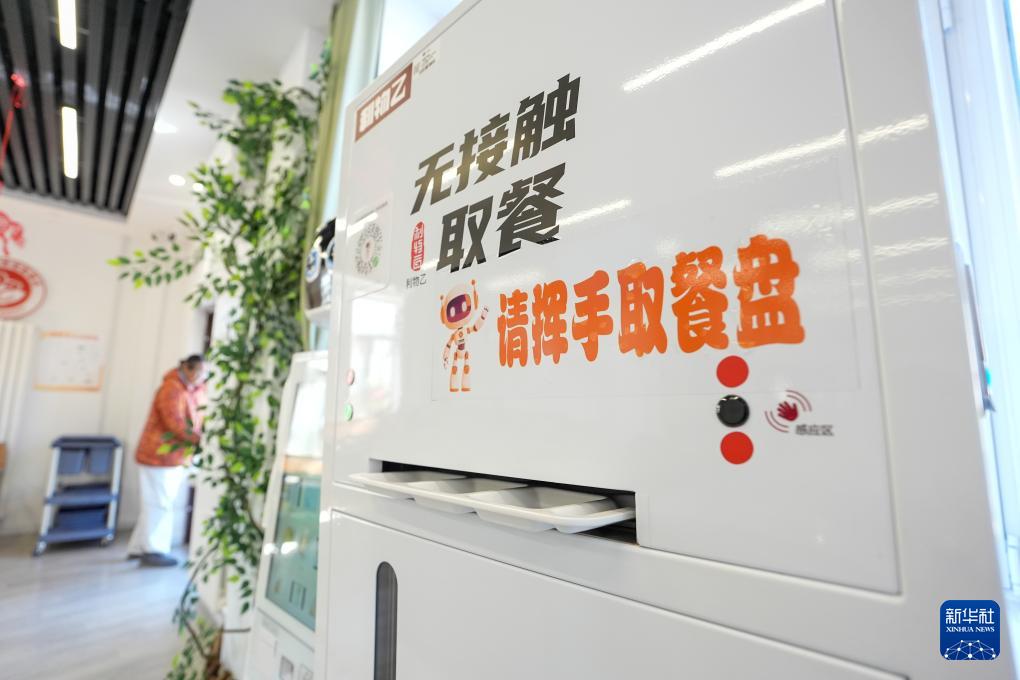 北京榮華街道智慧康養(yǎng)機(jī)器人養(yǎng)老驛站內(nèi)的智能分餐盤機(jī)(3月18日攝)。