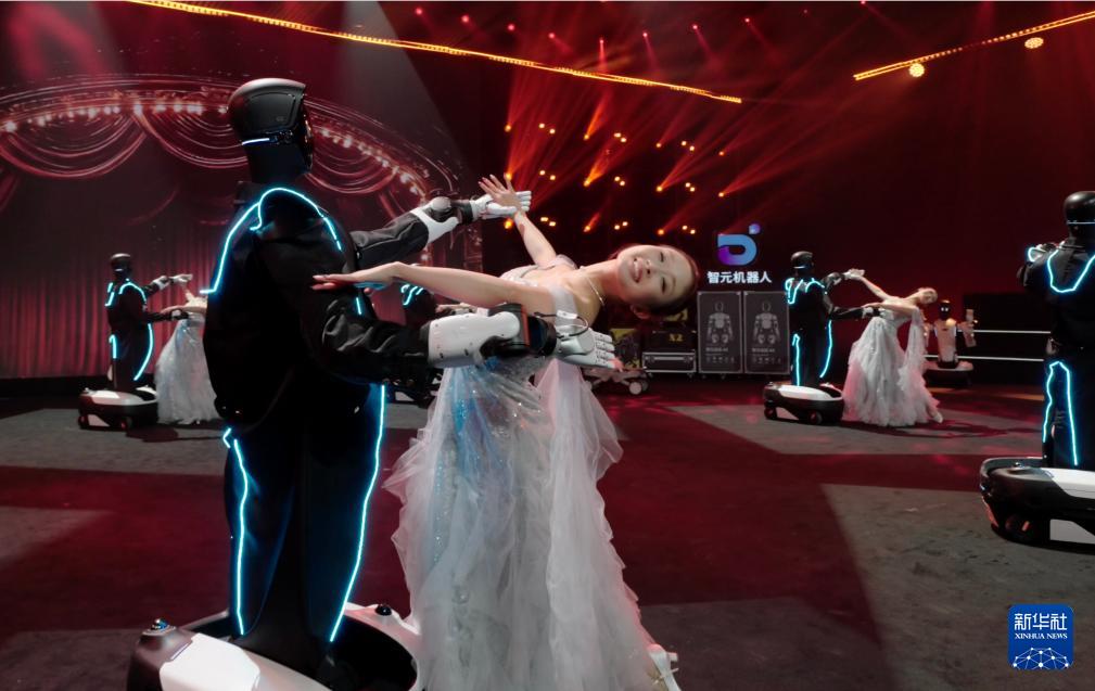 機(jī)器人與人在大型機(jī)器人晚會“機(jī)器人奇妙夜”上共舞(2026年2月8日攝)。新華社發(fā)