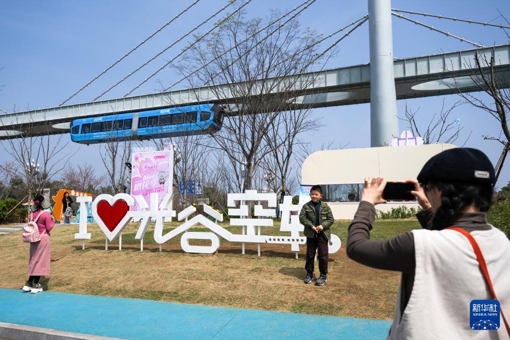 3月23日,游客乘坐空軌列車(chē)游覽。