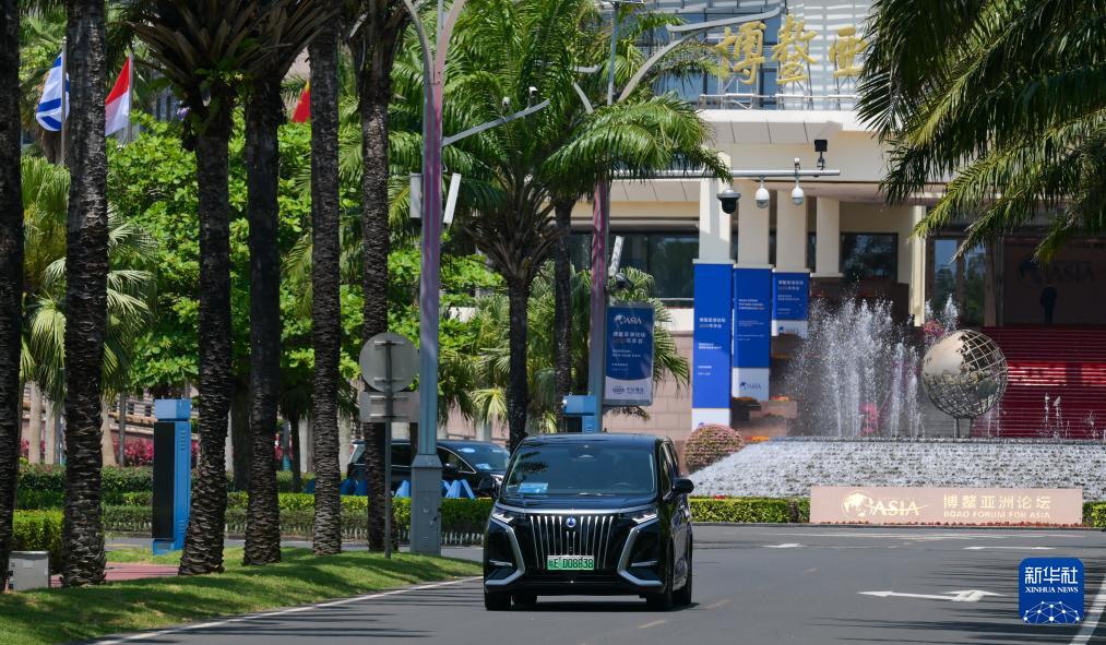 3月24日拍攝的行駛在博鰲零碳示范區(qū)的新能源汽車。