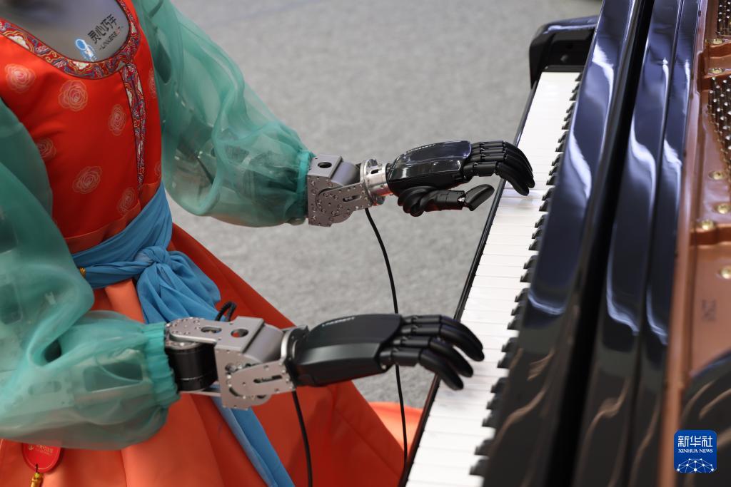 3月25日,在中關(guān)村國際創(chuàng)新中心,一款機(jī)器人在表演鋼琴演奏。