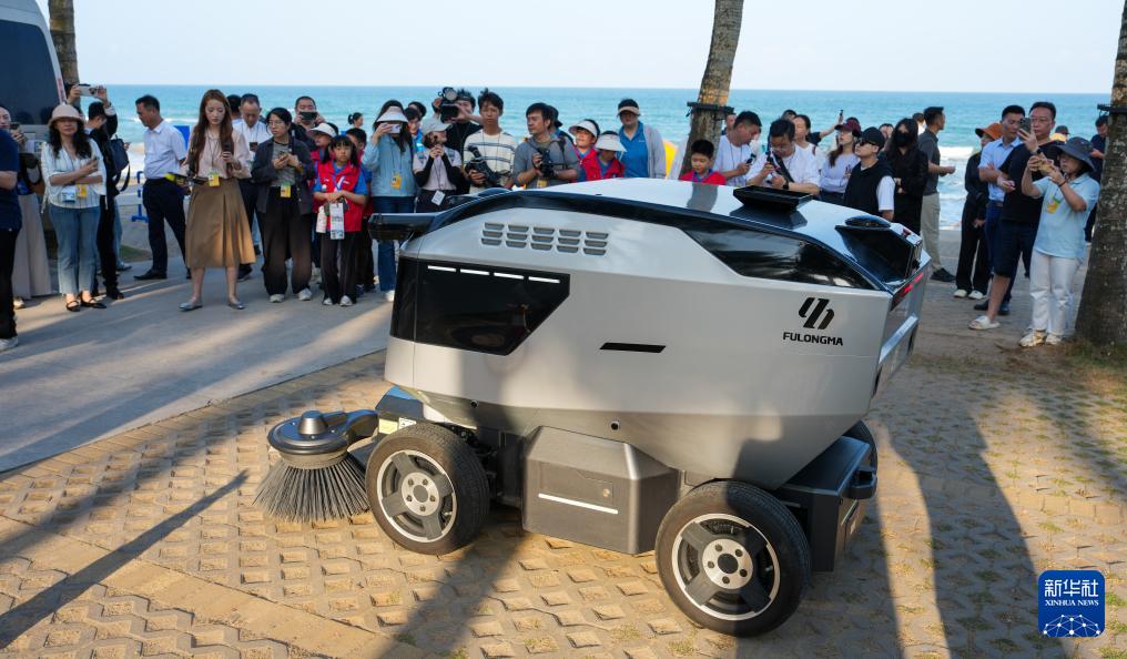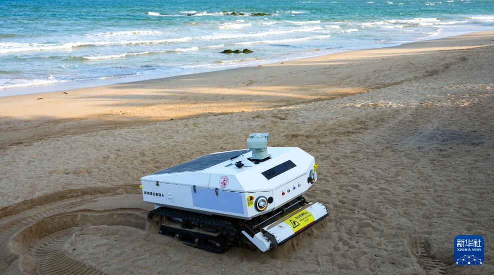 岸灘清掃機器人在海南省瓊海市博鰲鎮(zhèn)海灘作業(yè)(3月23日攝)。