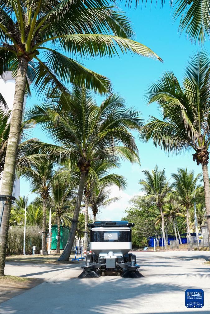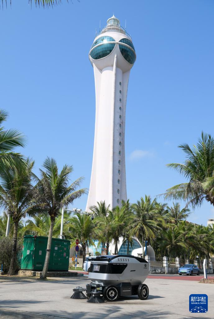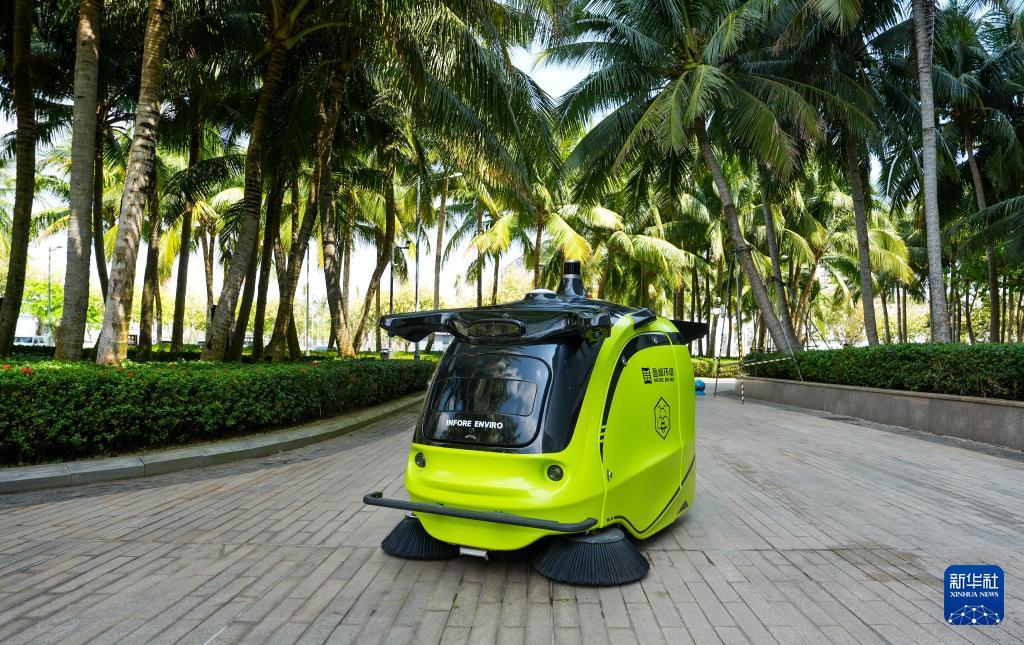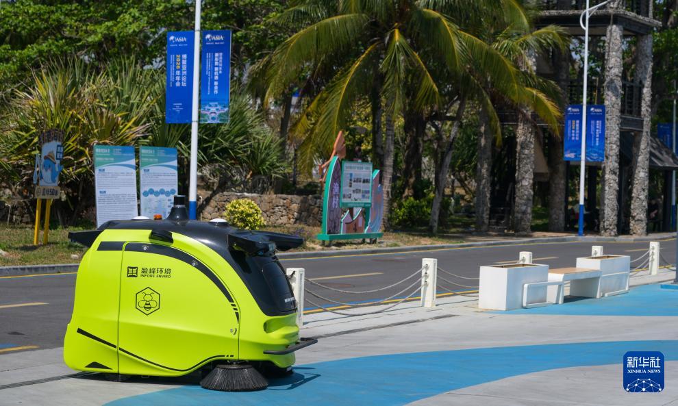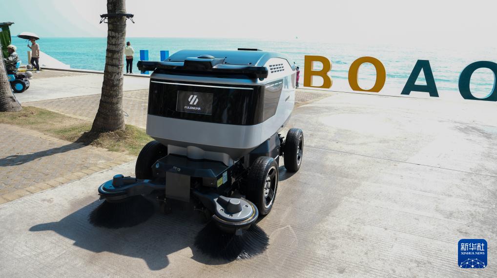 智能清掃機器人在海南省瓊海市博鰲鎮(zhèn)街頭作業(yè)(3月23日攝)。
