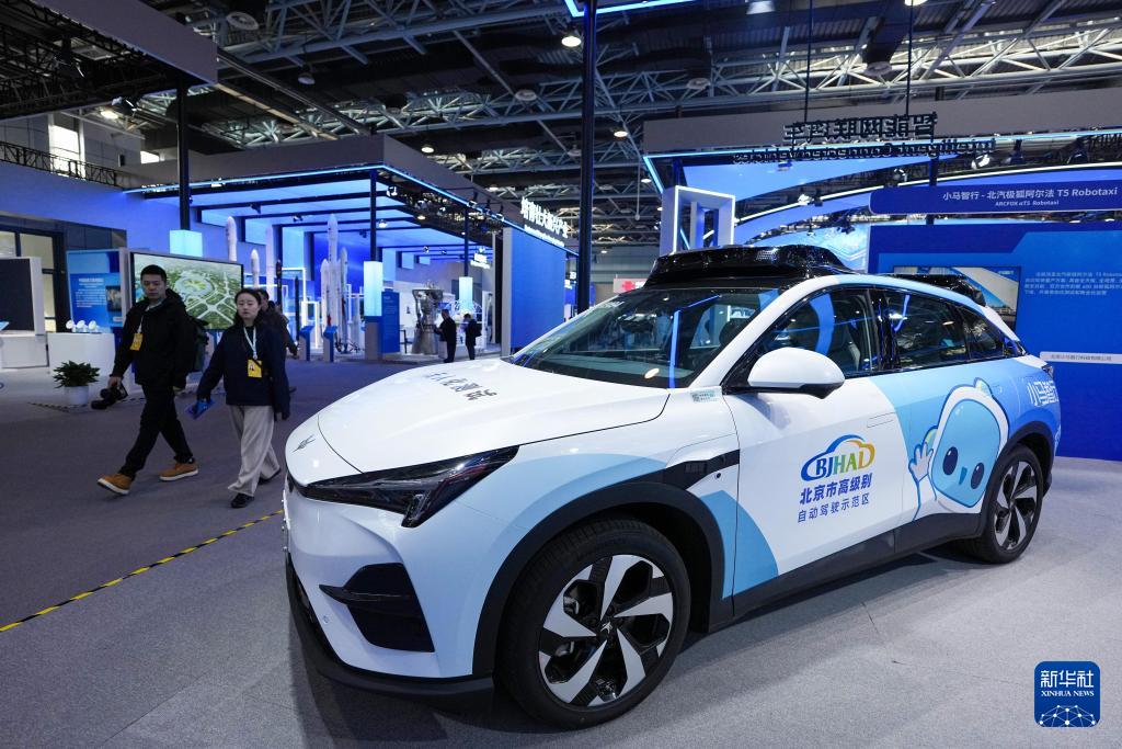在中關(guān)村展示中心常設(shè)展上展出的自動(dòng)駕駛車輛(3月24日攝)。