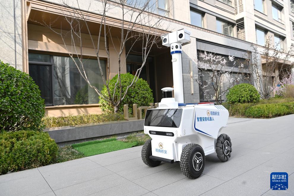 智慧安防機(jī)器人在雄安新區(qū)華清園小區(qū)巡查(3月25日攝)。該機(jī)器人具備全天候自動(dòng)巡邏、環(huán)境監(jiān)測(cè)、人體檢測(cè)、車牌識(shí)別、煙火識(shí)別等功能,能夠完成部分夜間值守、重點(diǎn)區(qū)域巡查等工作,提升社區(qū)安全感和治理效率。
