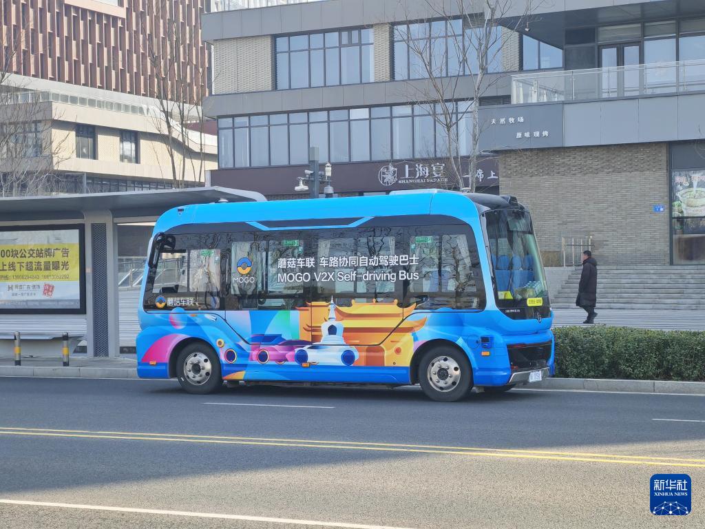 車路協(xié)同自動(dòng)駕駛巴士在雄安新區(qū)容東片區(qū)街道上行駛(3月20日攝)。