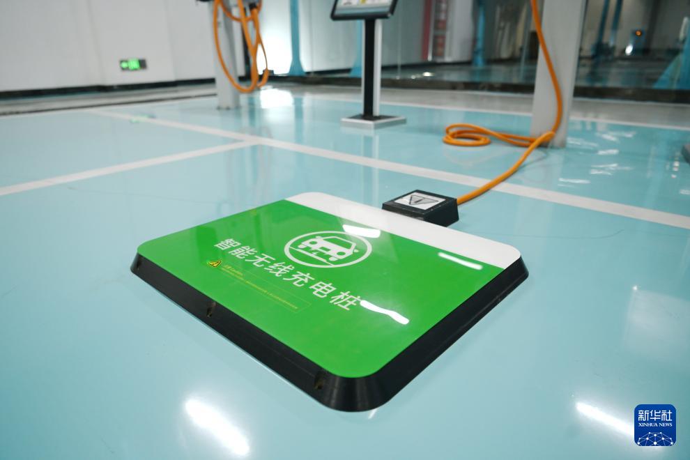 這是雄安新區(qū)劇村變電站智慧充電區(qū)的電動(dòng)汽車智能無線充電樁(3月25日攝)。