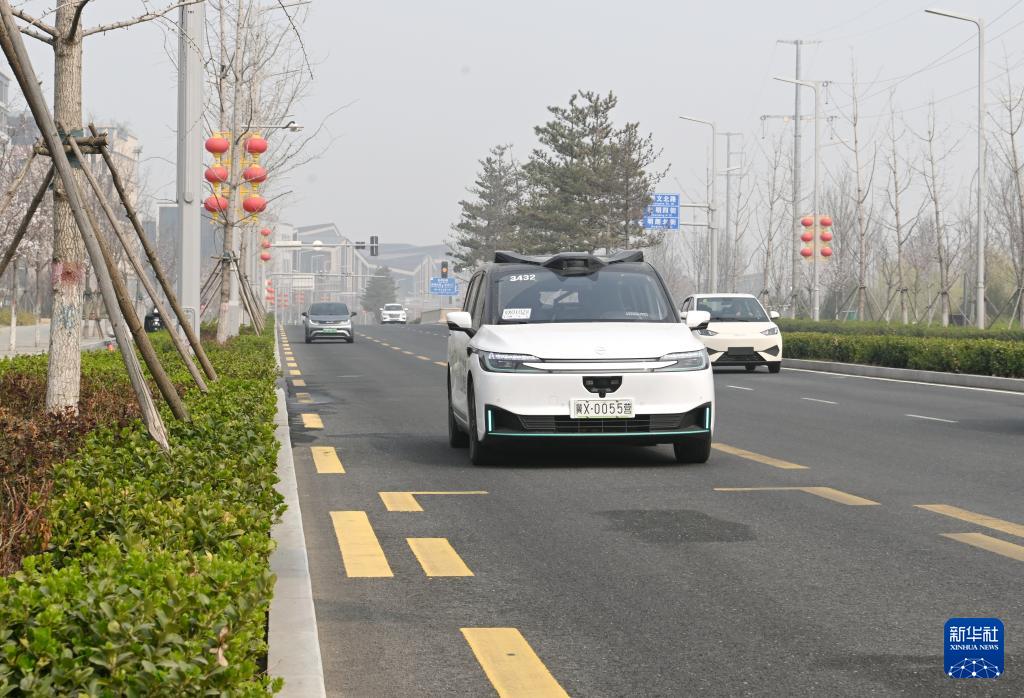 一輛無人駕駛網(wǎng)約車在雄安新區(qū)容東片區(qū)街道上行駛(3月26日攝)。