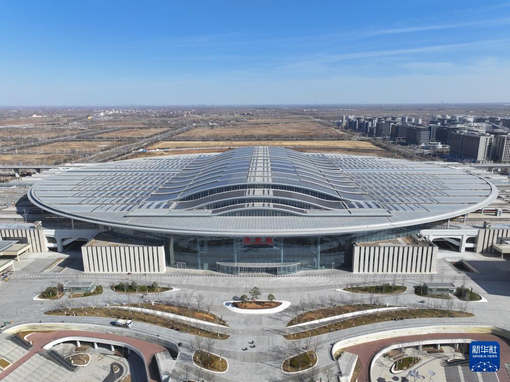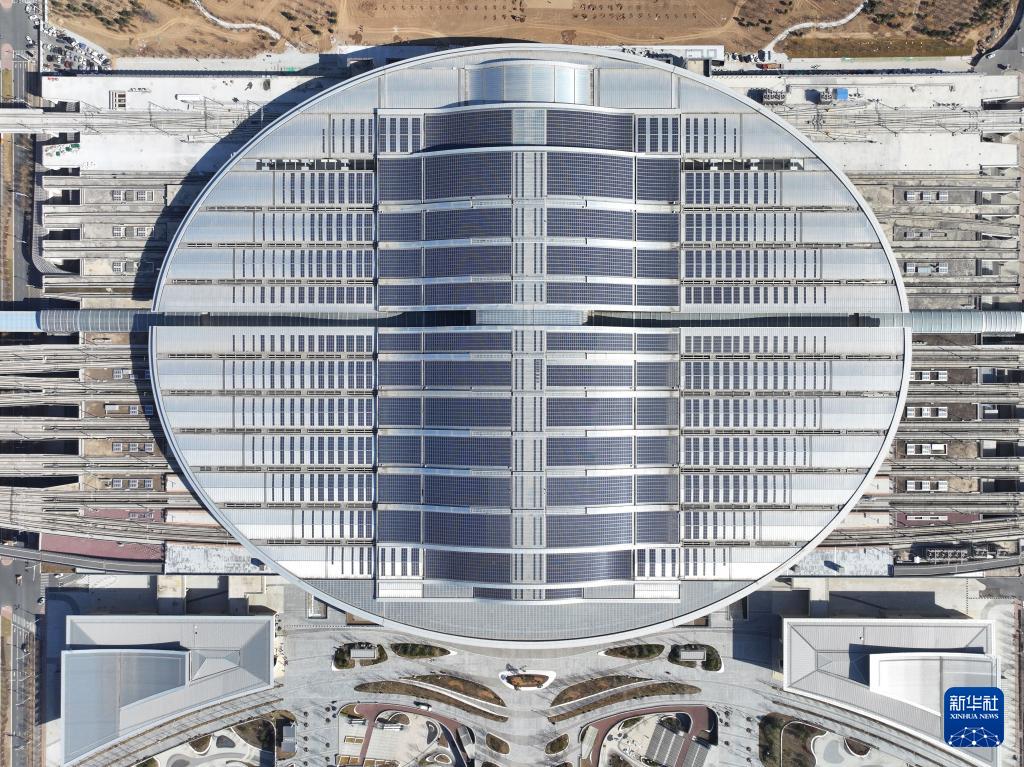 這是京雄城際鐵路雄安站(3月18日攝,無人機(jī)照片)。京雄城際鐵路雄安站站頂分布式光伏電站總裝機(jī)容量6000千瓦,站頂鋪設(shè)1.77萬塊、4.2萬平方米多晶硅光伏組件,電站采用自發(fā)自用、余電上網(wǎng)模式,自2020年12月正式并網(wǎng)發(fā)電以來,已累計(jì)發(fā)電超過3100萬千瓦時(shí)。