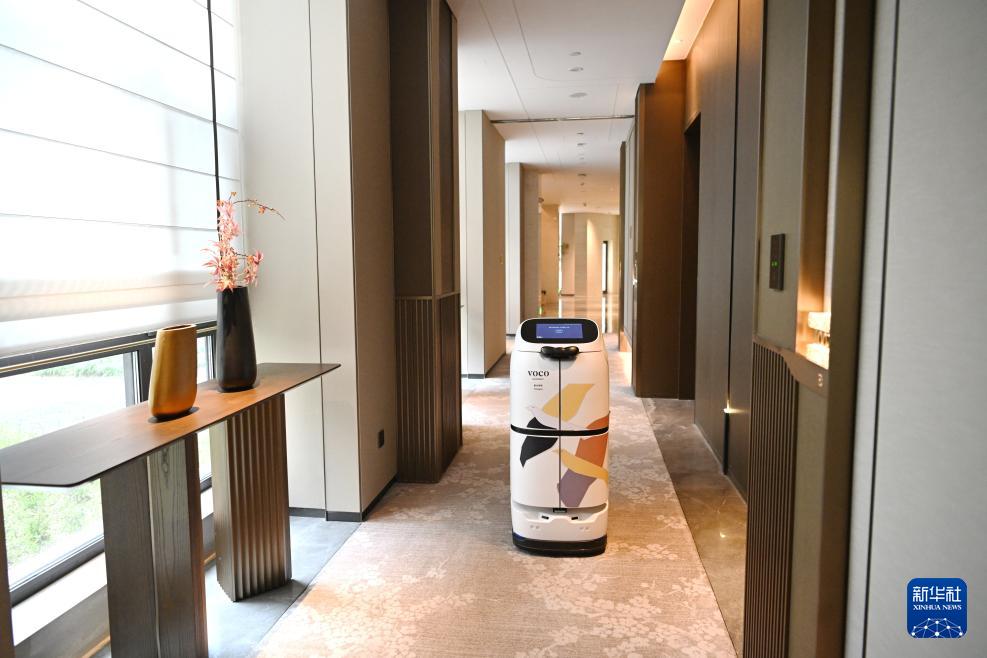 在雄安新區(qū)容東片區(qū)一家酒店,外賣機(jī)器人為住店客人送外賣(3月26日攝)。