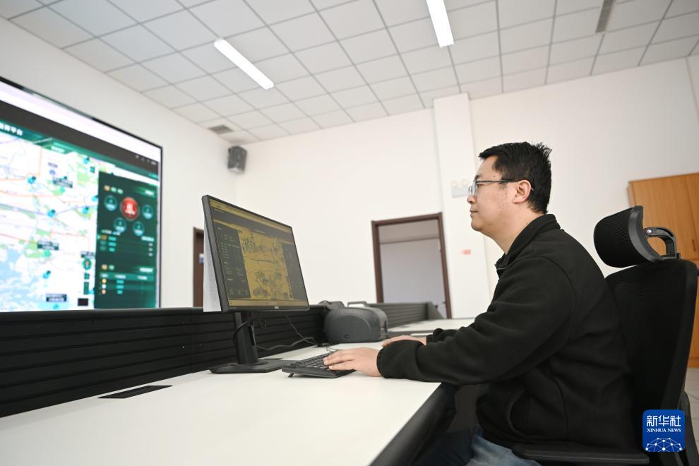 在雄安新區(qū)“千年秀林”雄中片區(qū)管護(hù)調(diào)度室,工作人員通過智慧林草綜合管護(hù)平臺(tái)進(jìn)行工作調(diào)度(3月19日攝)。智慧林草綜合管護(hù)平臺(tái)將視頻監(jiān)控、人員定位、問題上報(bào)等功能融為一體,實(shí)時(shí)更新護(hù)林員軌跡、林區(qū)異常情況,實(shí)現(xiàn)森林管護(hù)數(shù)字化、智能化。