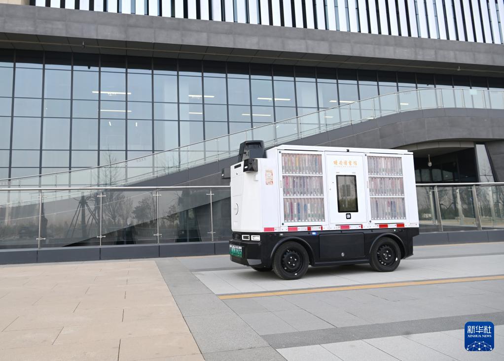 這是雄安圖書館無人駕駛送書車(3月25日攝)。