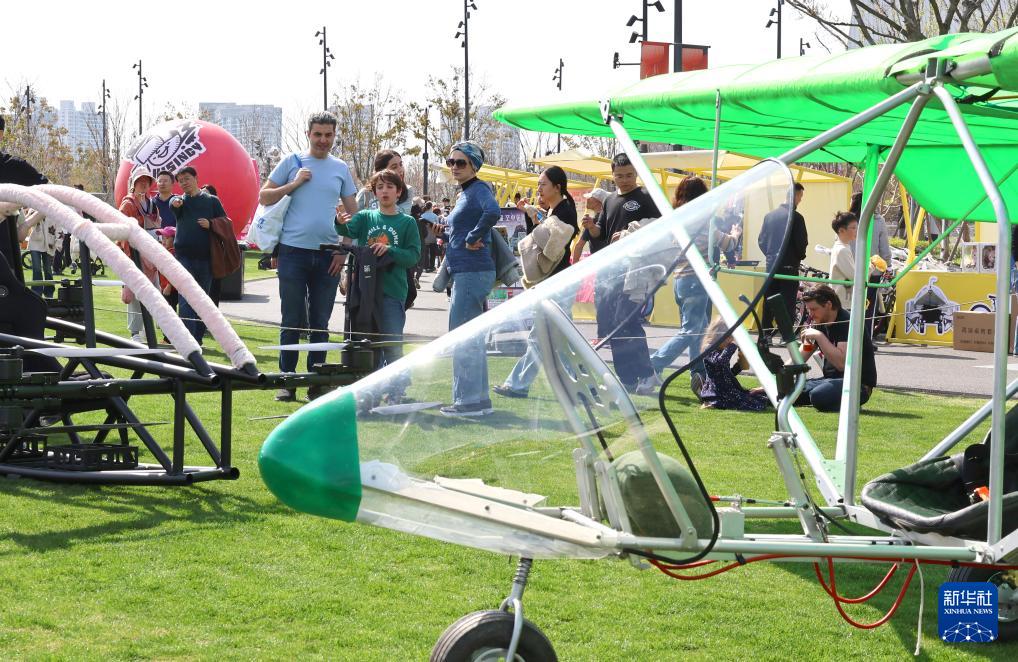 3月28日,市民游客在活動(dòng)現(xiàn)場(chǎng)展示的輕型飛行器旁駐足觀看。