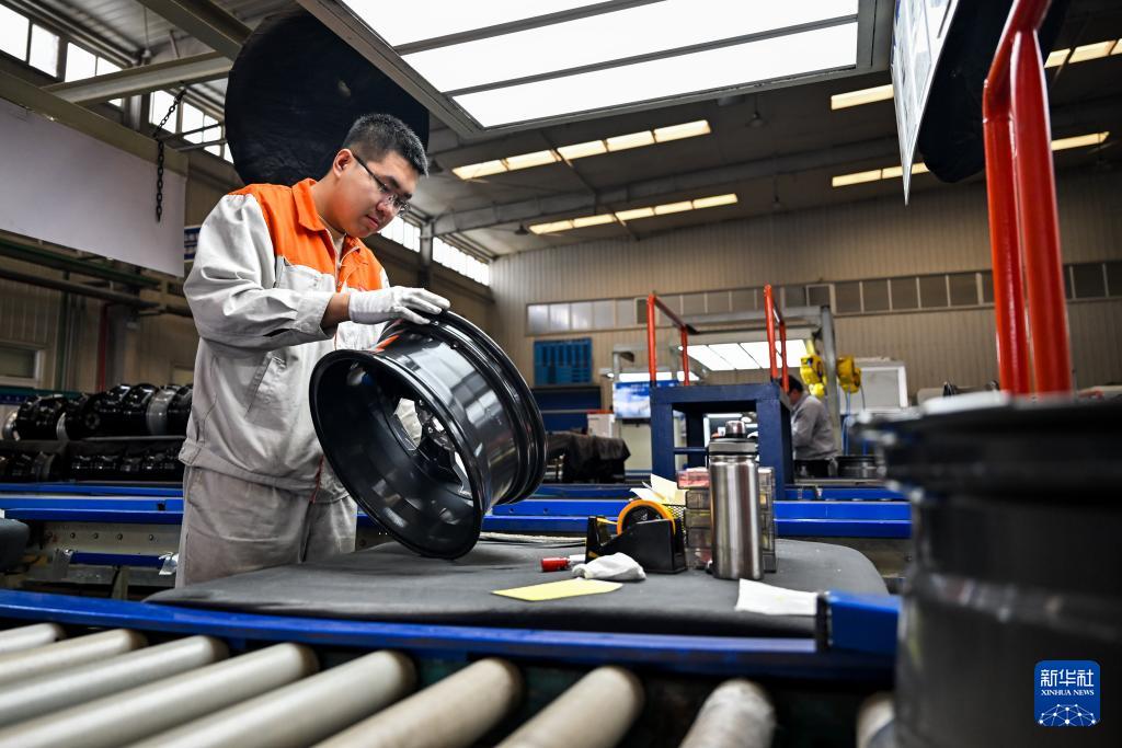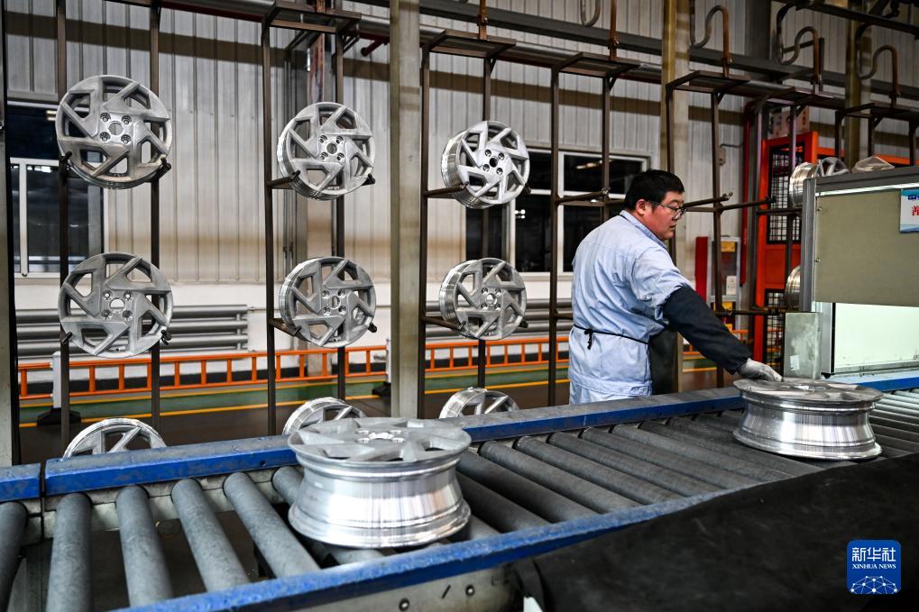 4月1日,工人在包頭盛泰汽車零部件制造有限公司鋁合金輪轂生產(chǎn)線上作業(yè)。