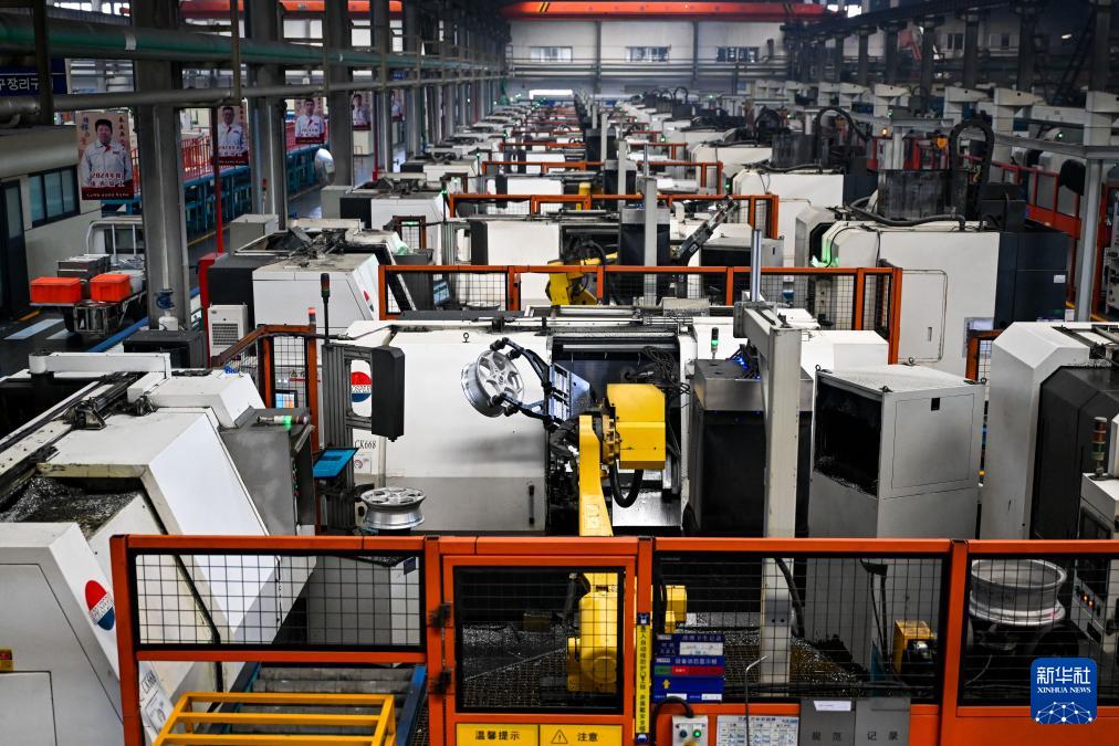 這是4月1日拍攝的包頭盛泰汽車零部件制造有限公司鋁合金輪轂生產(chǎn)線。