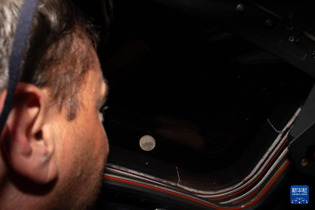 4月6日,美國航空航天局宇航員里德·懷斯曼從執(zhí)行“阿耳忒彌斯2號”載人繞月飛行任務的“獵戶座”飛船上觀看月球。