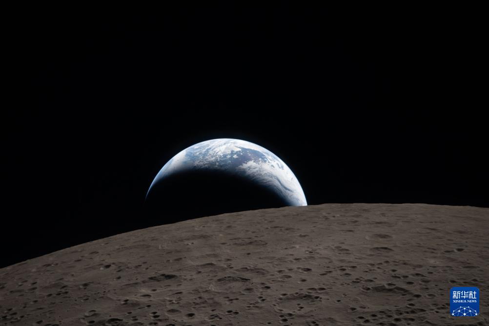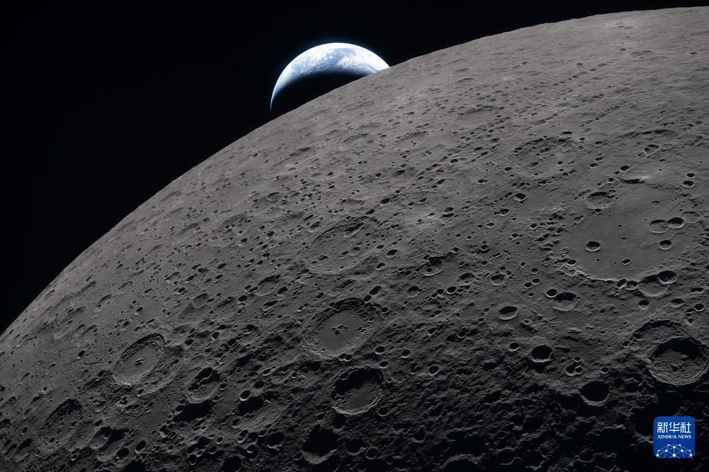 這是4月6日從執(zhí)行“阿耳忒彌斯2號(hào)”載人繞月飛行任務(wù)的“獵戶座”飛船上拍攝的月球表面。