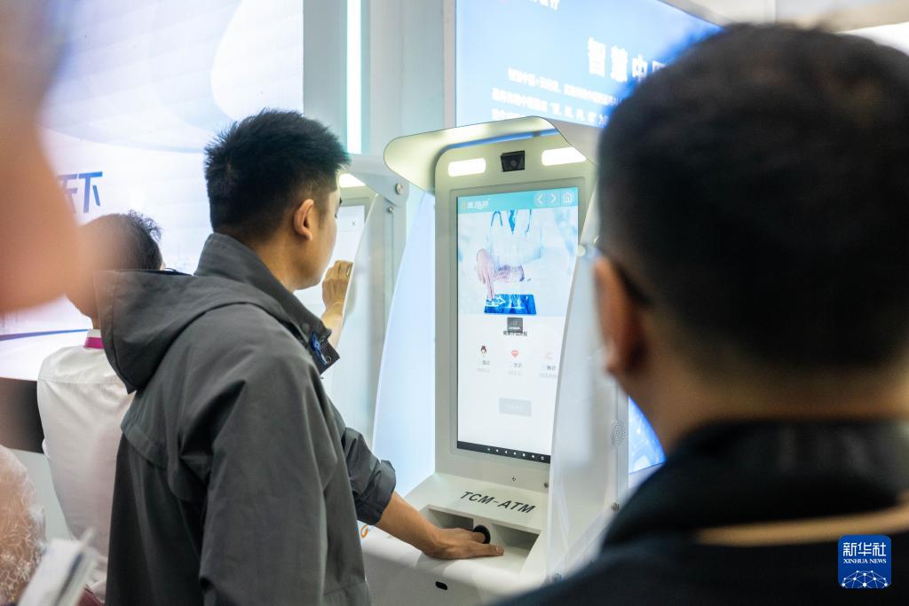 4月10日,在湖南國際會展中心,觀眾在體驗智能健康診斷設備。