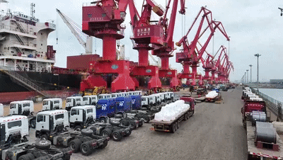 新海灣公司生產(chǎn)調度指揮中心調度班長程亮告訴記者,“今年一季度,贛榆港區(qū)車輛機械出口數(shù)量已經(jīng)突破6000臺,較去年同期增長525%,約占去年出口總量的45%。目前,我們公司吊裝能力穩(wěn)定在每天三百余臺?!?/p>