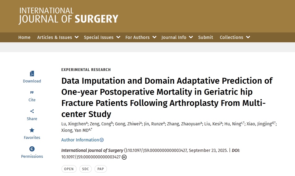髖部骨折因其高致死率與高致殘率,常被稱為“人生最后一次骨折”,嚴重威脅老年人健康。如何精準評估手術風險、預測術后生存率,一直是醫(yī)生制定個體化治療方案時的核心挑戰(zhàn)。1月20日,記者從陸軍軍醫(yī)大學陸軍特色醫(yī)學中心(大坪醫(yī)院)獲悉,一項由重慶多家醫(yī)療機構聯(lián)合完成的研究成果在國際期刊《國際外科學雜志》發(fā)表,該研究通過人工智能與機器學習技術,有效破解了多中心數(shù)據(jù)質量參差不齊、標準不一這一臨床決策瓶頸。