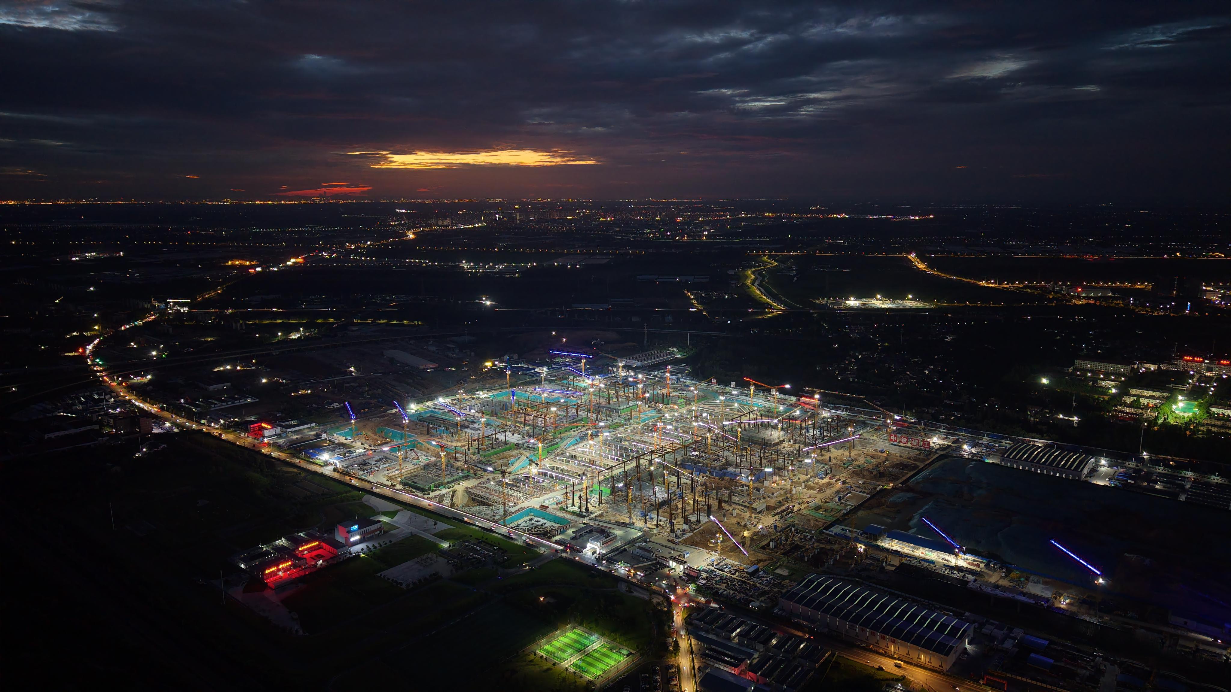 “后續(xù)建設(shè)中,項(xiàng)目將進(jìn)一步推廣分布式光伏應(yīng)用、管線預(yù)制化安裝等綠色低碳技術(shù),全面貫徹綠色建造標(biāo)準(zhǔn)。同時(shí)通過(guò)BIM正向設(shè)計(jì)、地面整平機(jī)器人等智能裝備與AI監(jiān)控技術(shù)的融合應(yīng)用,施工效率預(yù)計(jì)可提升3-4倍?!编嵑暧暾f(shuō)。