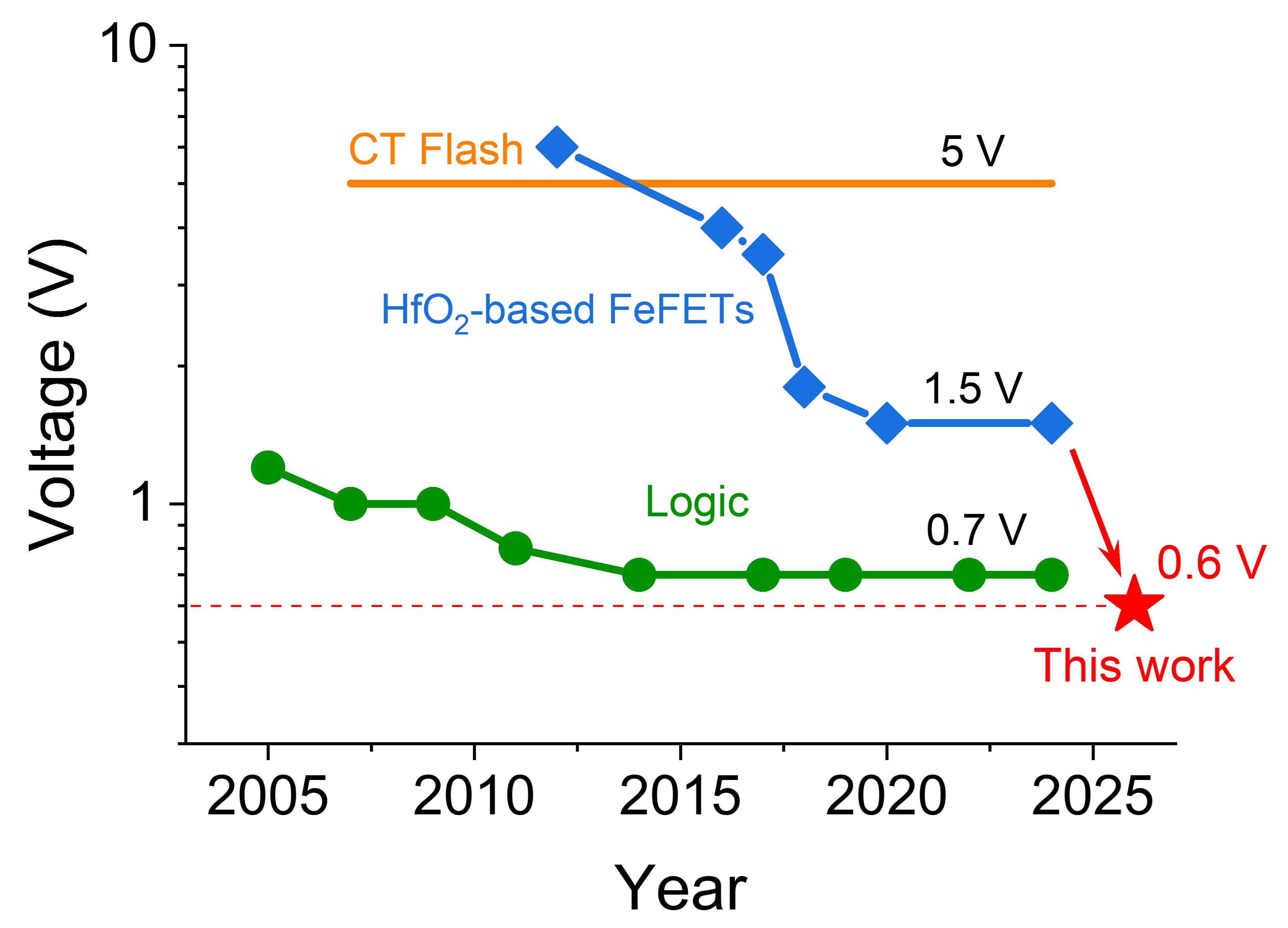 “我們持續(xù)精進(jìn)工藝,將鐵電晶體管的物理柵長縮減至極限1納米,這一精度達(dá)到原子尺度,促成鐵電層內(nèi)部形成高強(qiáng)度電場(chǎng),僅需極少外部能量(0.6V電壓)激發(fā),即可輕松翻轉(zhuǎn)鐵電極化?!鼻癯抗獗硎?,這一技術(shù)打破了傳統(tǒng)鐵電晶體管的物理限制,使得能耗比國際最好水平整整降低了一個(gè)數(shù)量級(jí)。