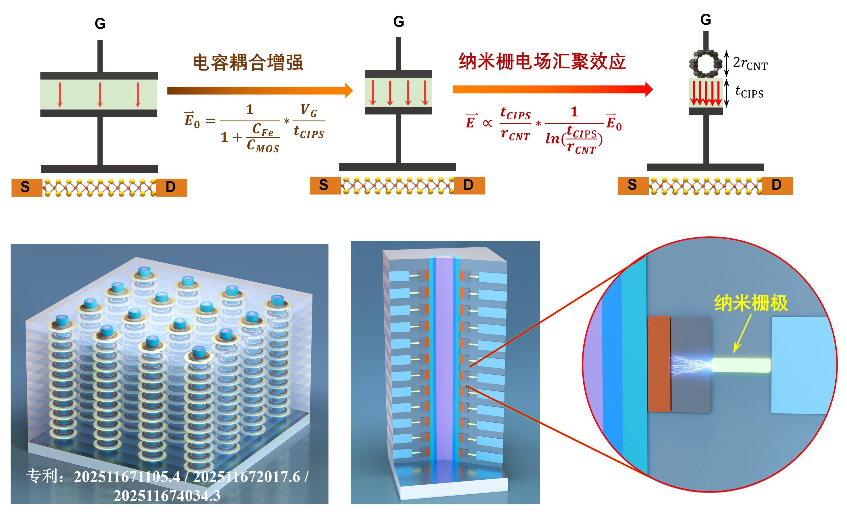 然而,傳統(tǒng)鐵電晶體管存在能耗過高、邏輯電壓不匹配等短板限制了其大規(guī)模應(yīng)用。為此,北京大學(xué)邱晨光研究員—彭練矛院士團(tuán)隊(duì),利用納米柵極結(jié)構(gòu)設(shè)計(jì),巧妙解決了鐵電材料“改變極化狀態(tài)”需要高電壓高能耗的問題。