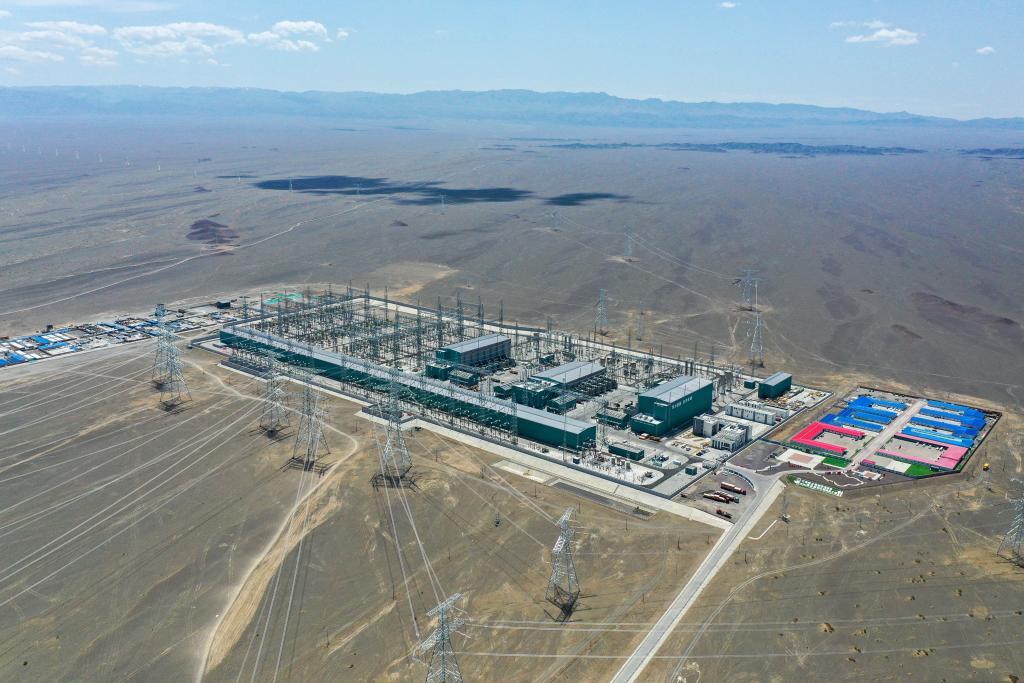 這是2025年6月10日拍攝的哈密—重慶±800千伏特高壓直流輸電工程新疆送端站——巴里坤換流站(無(wú)人機(jī)照片)。新華社記者丁磊 攝