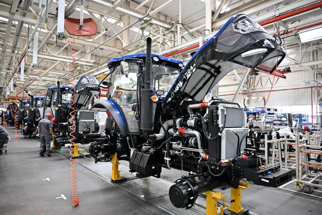 在濰柴雷沃智慧農(nóng)業(yè)科技股份有限公司拖拉機(jī)工廠,工人在裝配智能拖拉機(jī)(2024年8月21日攝)。新華社記者 李紫恒 攝