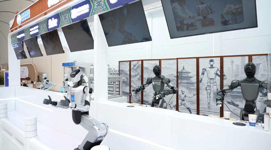 2026中關(guān)村論壇年會(huì)上,機(jī)器人餐吧的機(jī)器人正在串糖葫蘆。主辦方供圖