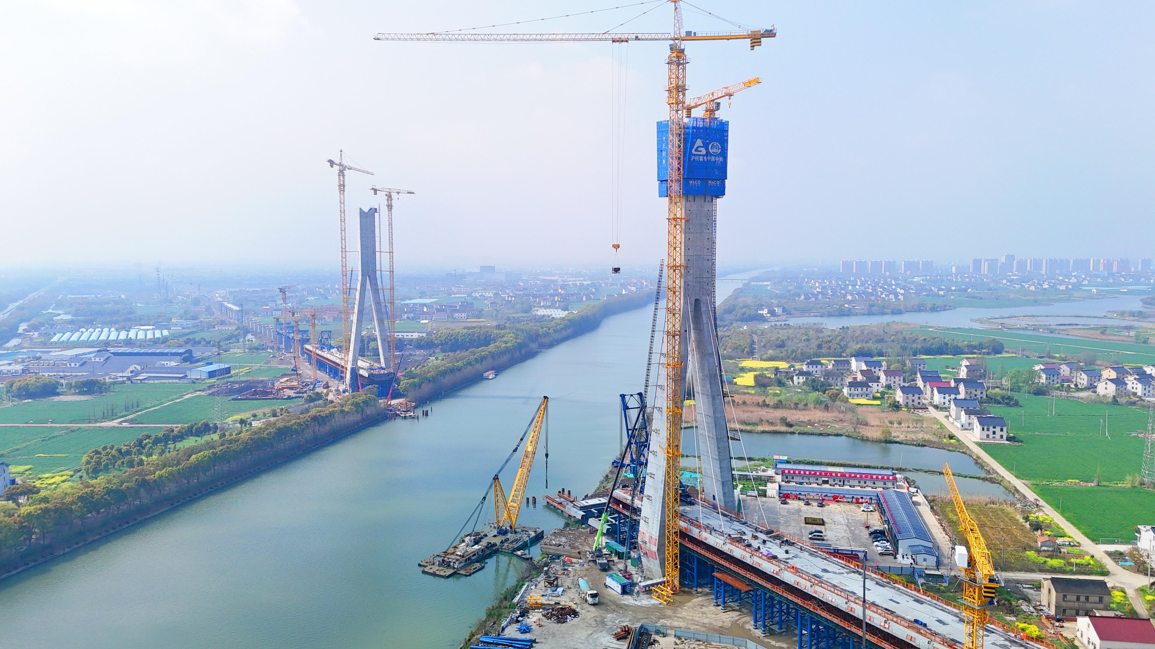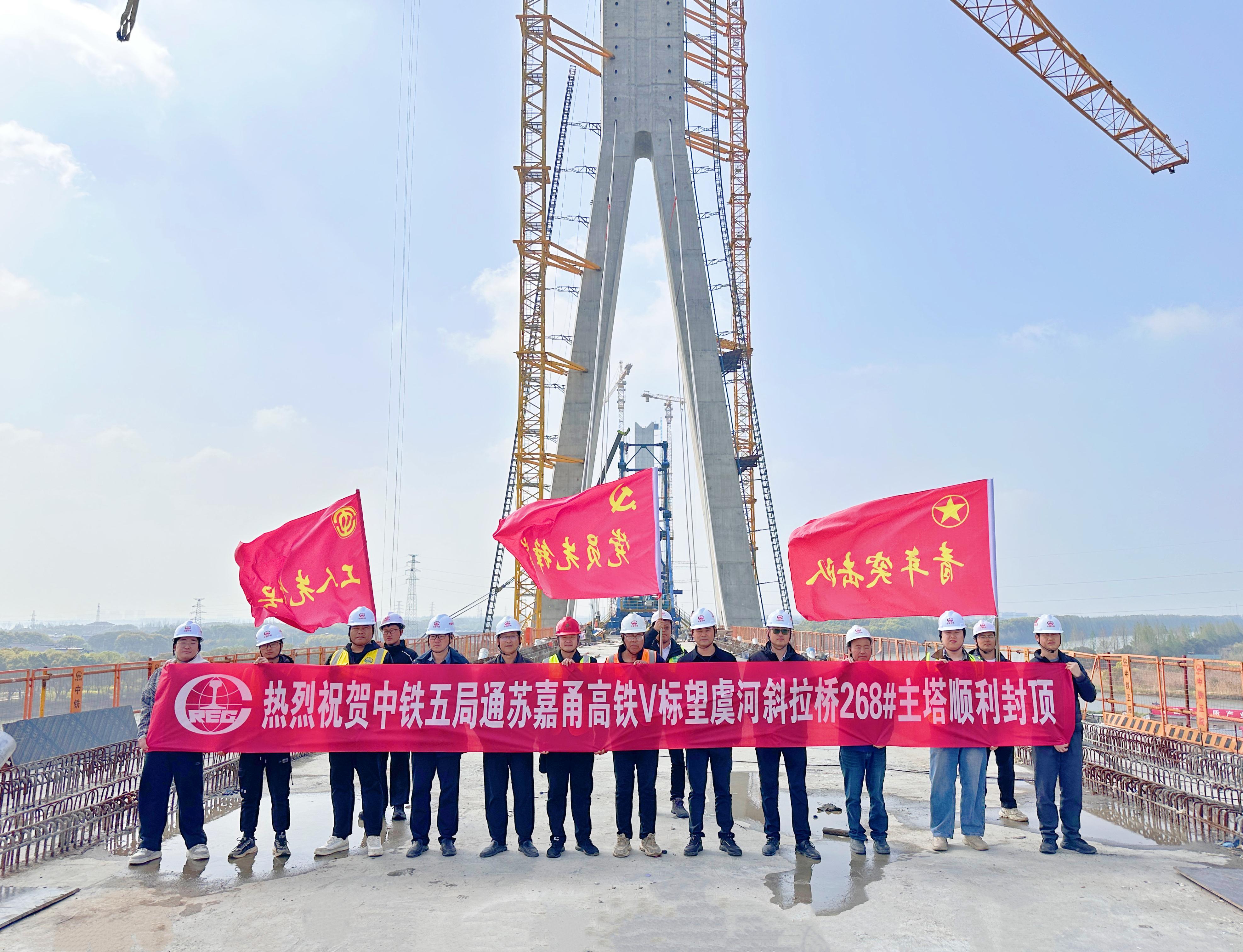 4月4日,由中鐵五局承建的通蘇嘉甬高鐵V標(biāo)望虞河斜拉橋268#主塔順利封頂,項目全面轉(zhuǎn)入斜拉索掛索與結(jié)合梁架設(shè)階段,為全線按期通車筑牢了根基。