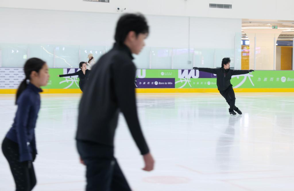 4月1日,滑冰愛好者在大靖冰上基地滑冰。新華社記者 顏麟蘊(yùn) 攝