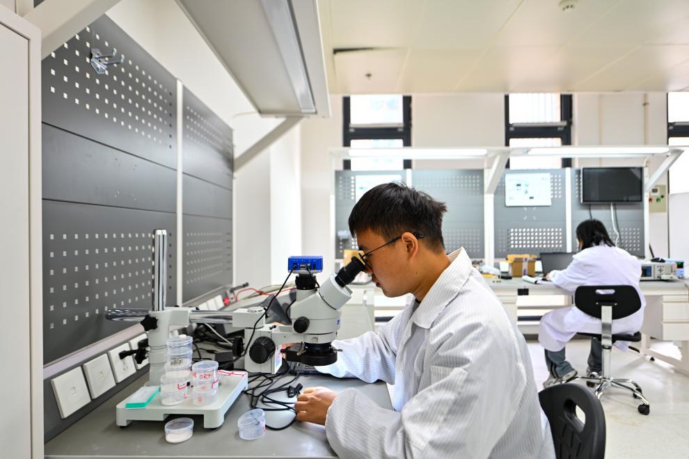 2月27日,在天津?yàn)I海高新區(qū)新智感知科技產(chǎn)業(yè)園的一處實(shí)驗(yàn)室,工作人員對(duì)產(chǎn)品進(jìn)行測(cè)試。新華社記者 趙子碩 攝