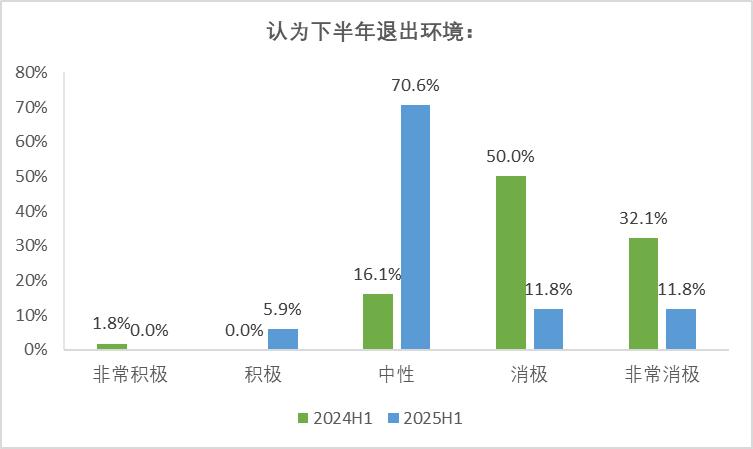 近四成現場投資機構對下半年的募資環(huán)境的持積極態(tài)度,僅兩成左右現場投資機構對下半年的投資、退出環(huán)境持消極態(tài)度。