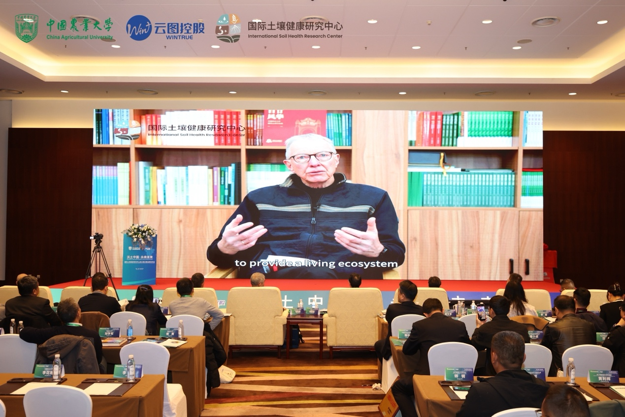 中國工程院院士、國際土壤健康研究中心主任、中國農(nóng)業(yè)大學(xué)教授張福鎖在主旨報告中提出了以“根際生命共同體”為核心的理論框架,強(qiáng)調(diào)通過良種良法與地上地下協(xié)同,構(gòu)建現(xiàn)代農(nóng)業(yè)技術(shù)體系。他還分享了河北曲周“綠色噸半糧”等成功案例,展示了通過科技創(chuàng)新實現(xiàn)“增產(chǎn)30%、增效50%、減排50%”的可行路徑。他強(qiáng)調(diào),科技小院“零距離、零時差、零門檻、零費(fèi)用”的“四零服務(wù)”模式在推動科技成果轉(zhuǎn)化中的重要作用,為該中心的未來發(fā)展指明了實踐方向。