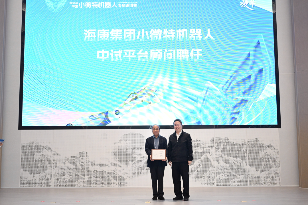 周文棟、劉泳玉共同為??导瘓F(tuán)小微特機(jī)器人中試平臺(tái)揭牌。孫立寧受聘為顧問(wèn)。