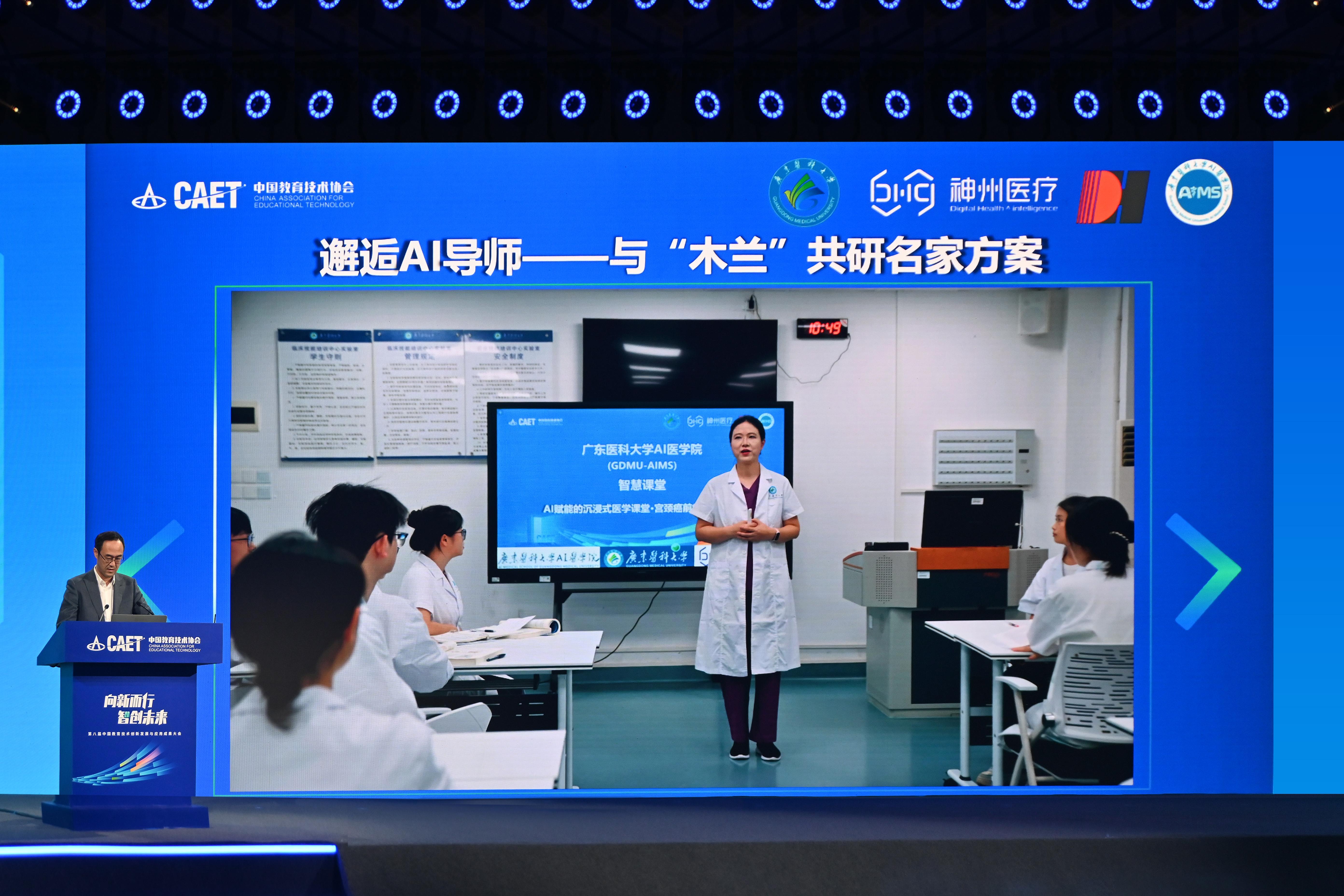 11月4日—5日,在第八屆中國教育技術(shù)創(chuàng)新發(fā)展與應(yīng)用成果大會(huì)上,廣東醫(yī)科大學(xué)聯(lián)合神州醫(yī)療、華為共同打造的全國首個(gè)AI醫(yī)學(xué)院(GDMU-AIMS)亮相,呈現(xiàn)了AI賦能下的“師-機(jī)-生”協(xié)同共創(chuàng)學(xué)習(xí)的新模式。