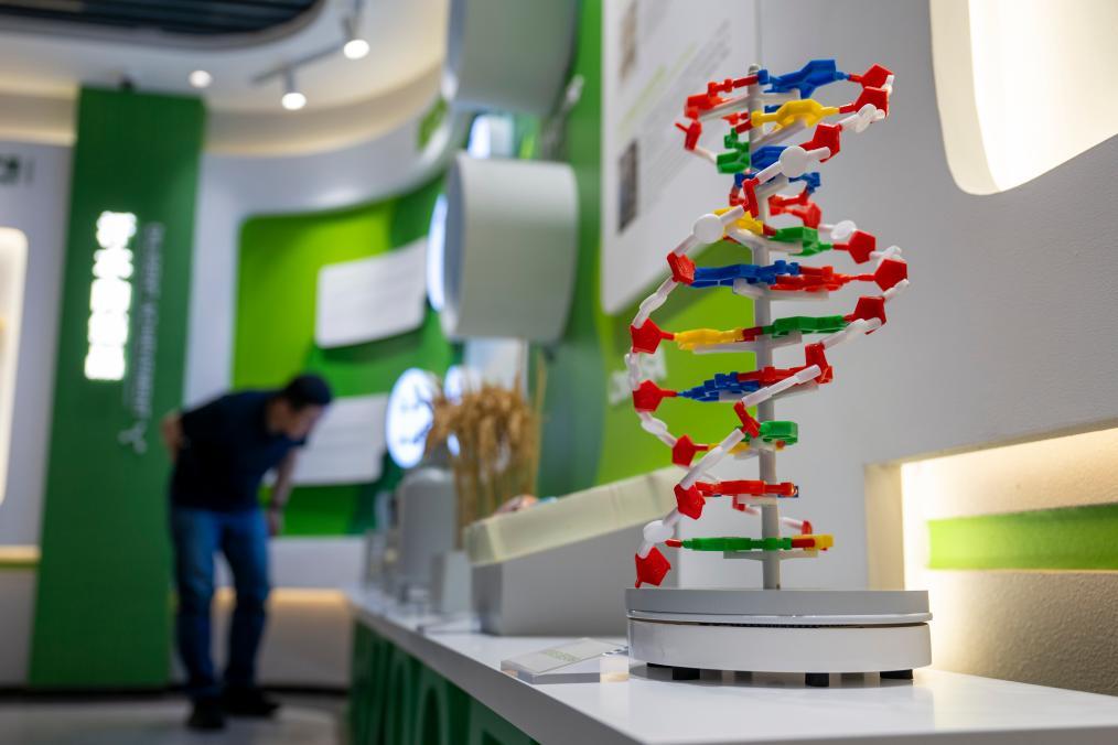 參觀人員在湖北武漢禾元生物科技股份有限公司展廳參觀(2025年4月21日攝)。新華社記者 伍志尊 攝