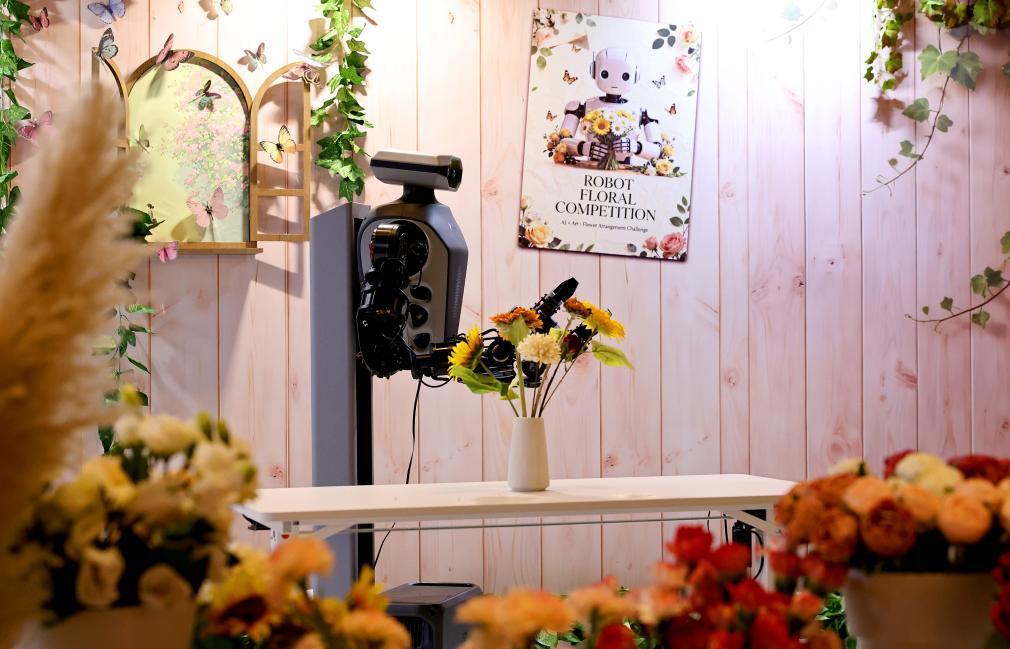 在應(yīng)急救援賽區(qū)的對面,具身智能被包圍在鮮花叢中,有11支賽隊(duì)一較高下。第三屆全國職業(yè)技能大賽人工智能賽道上海隊(duì)教練張曄說,這考驗(yàn)的是對“力”的掌控,因?yàn)榛ㄇo的脆度、花瓣的張力,都在毫厘之間。