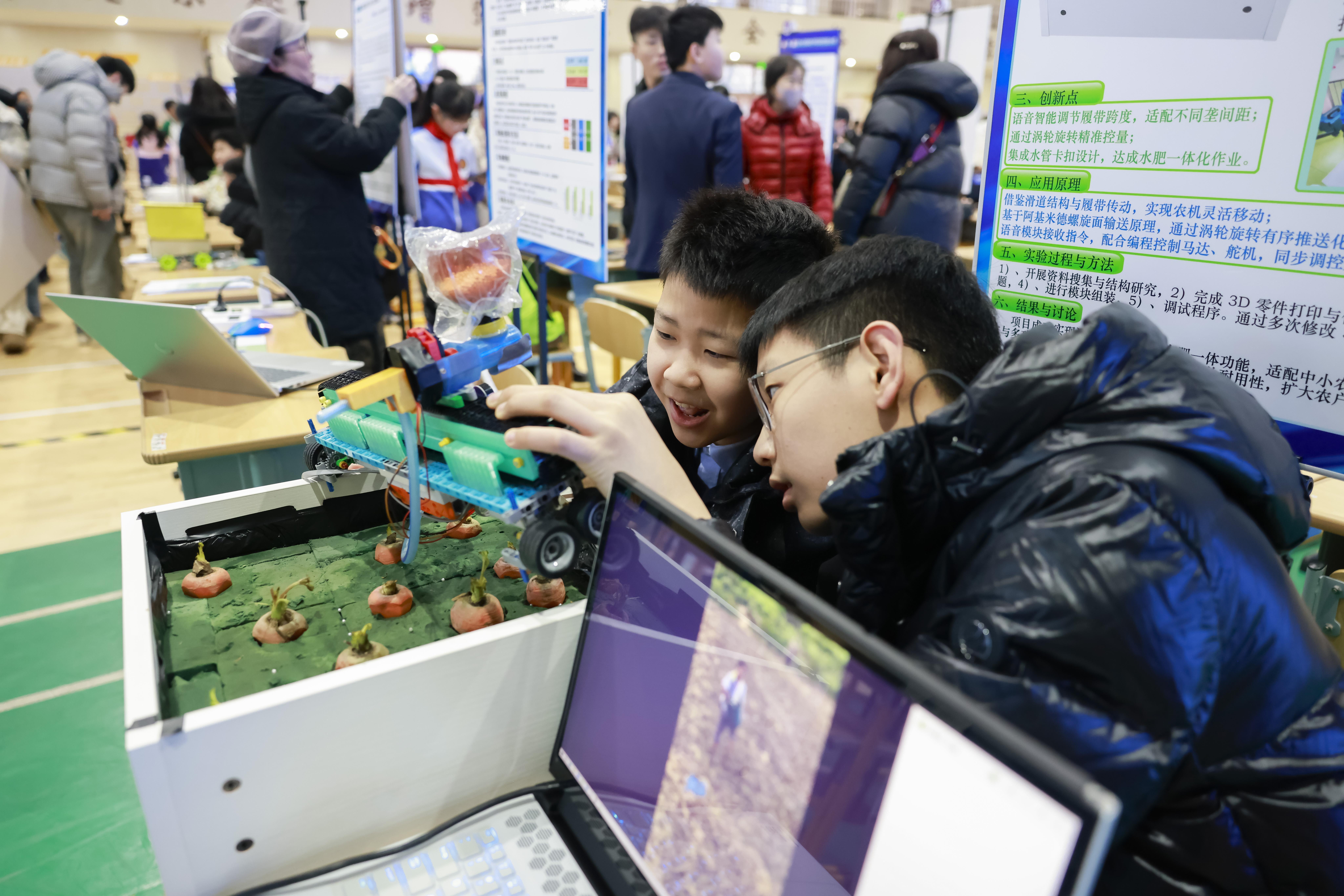激情答辯,思維碰撞?!澳銥槭裁催x擇這個結構?”“實驗數(shù)據(jù)是如何收集的?”評審專家的問題接二連三。面對來自高校與科研院所的評委,小選手們從容應答,不時用實物、圖表輔助說明。答辯區(qū)時而安靜專注,時而響起掌聲。不少評委表示:“孩子們的項目不僅有趣,更體現(xiàn)出問題意識和扎實的研究態(tài)度。”