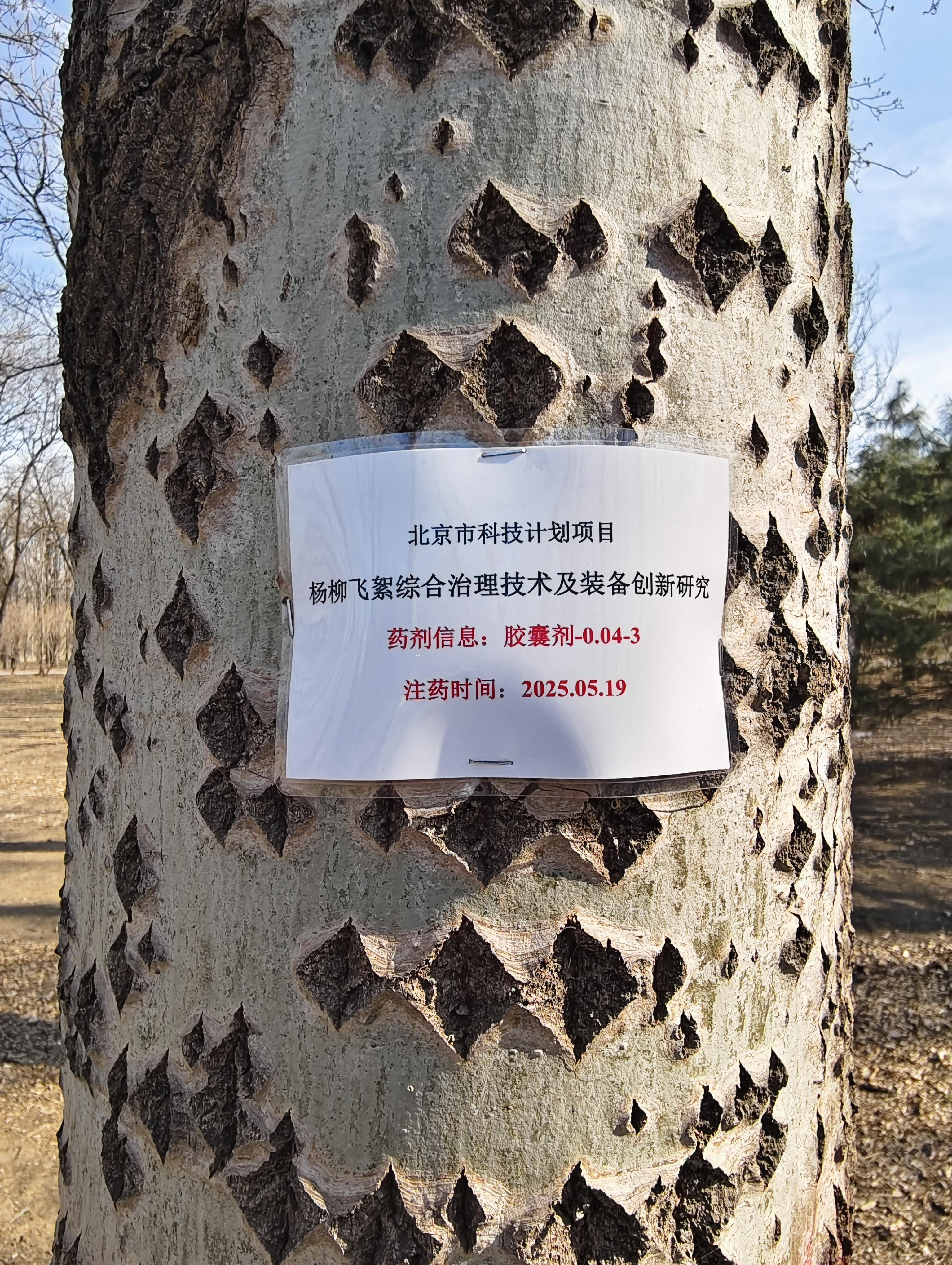 “楊柳樹體內(nèi)本身就少量存在一種叫作赤霉素的植物生長調(diào)節(jié)劑,它好比開花結(jié)果的‘開關(guān)’。”吳學(xué)民介紹,團(tuán)隊花了近三年時間,引入納米緩釋技術(shù),將赤霉素制成微囊膠囊或栓劑,注入樹干后緩慢釋放,實現(xiàn)“打一針,管兩年”的長效效果。