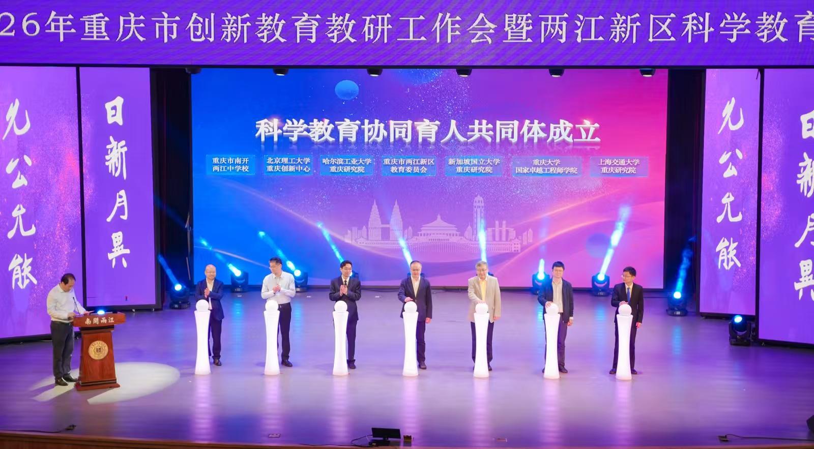 開(kāi)幕式上,由兩江新區(qū)教委聯(lián)合新加坡國(guó)立大學(xué)重慶研究院、上海交通大學(xué)重慶研究院、哈爾濱工業(yè)大學(xué)重慶研究院、北京理工大學(xué)重慶創(chuàng)新中心、重慶大學(xué)國(guó)家卓越工程師學(xué)院、南開(kāi)兩江中學(xué)共同發(fā)起的“科學(xué)教育協(xié)同育人共同體”正式成立,標(biāo)志著區(qū)域協(xié)同育人進(jìn)入機(jī)制化新階段。