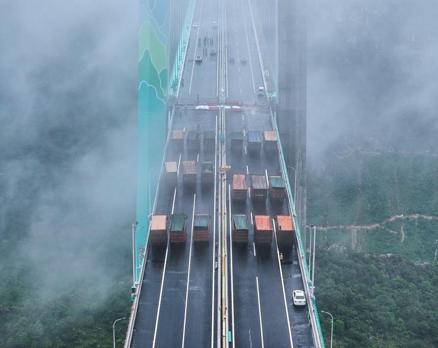 8月21日,在建世界第一高橋——貴州花江峽谷大橋正式啟動荷載試驗。2022年開工建設的花江峽谷大橋,跨越被譽為“地球裂縫”的花江大峽谷,是貴州省六枝至安龍高速公路的控制性工程。大橋為鋼桁梁懸索橋,全長2890米,其中主橋跨徑1420米,橋面至水面高度625米。