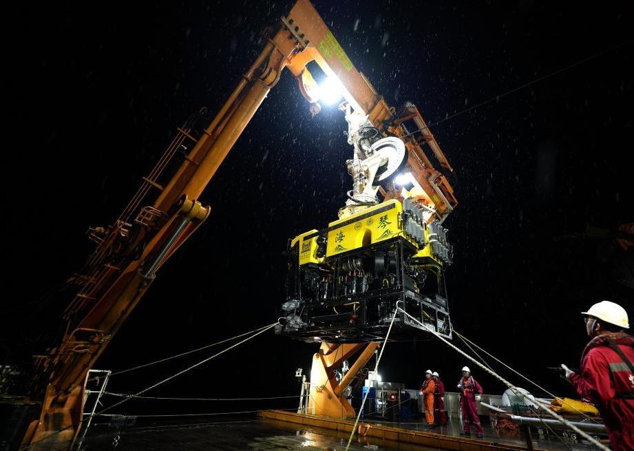 “海琴”號由上海交通大學水下工程研究所自主研制,是為“中山大學”號海洋綜合科考實習船量身定制的新型高效深海電動ROV系統(tǒng),搭載了高清攝像機、多功能機械手、探測傳感器等科考設備,具備自動定向、懸停定位、自動巡線等智能作業(yè)能力。