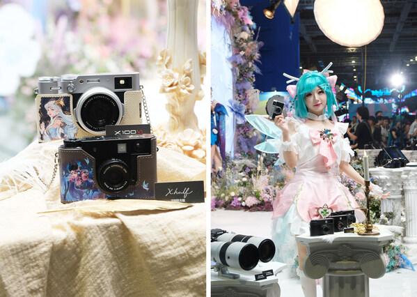 富士膠片展臺特別設置了《王者榮耀》主題拍照區(qū),通過X half的"雙重曝光"、"2 in 1"等個性化拍攝功能,玩家可與游戲場景"同框",創(chuàng)造出"游戲元素+現實場景"的創(chuàng)意自由組合,留存專屬于自己的"王者記憶"。