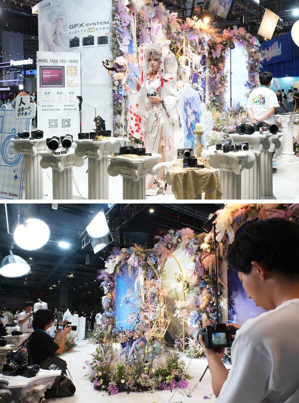 富士膠片展臺也成為了攝影師與Coser"雙向奔赴"的舞臺。四位活躍于二次元與攝影圈的創(chuàng)作者——CN 富小新、天地鴻鷗、Liky與Winys,雖然來自不同創(chuàng)作背景,卻不約而同選擇了富士膠片 GFX 中畫幅系統(tǒng)來記錄那些二次元角色被精彩演繹的瞬間。