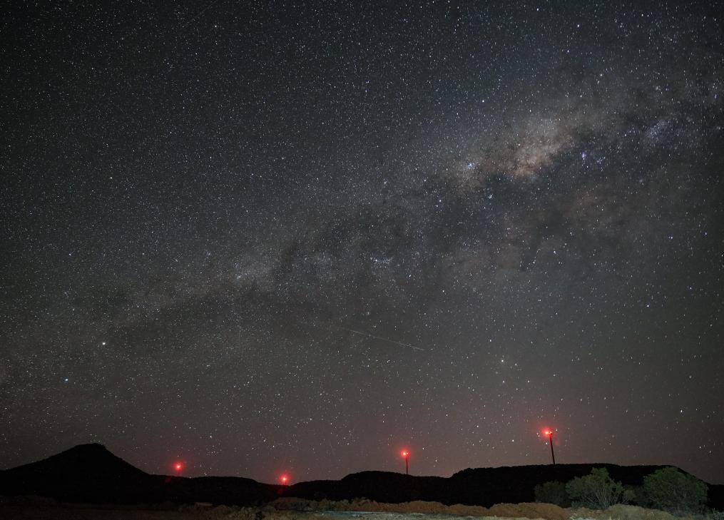 2025年10月22日,在南非北開普省德阿鎮(zhèn),德阿風電項目的風機在星空下運轉(zhuǎn)。新華社記者韓旭攝