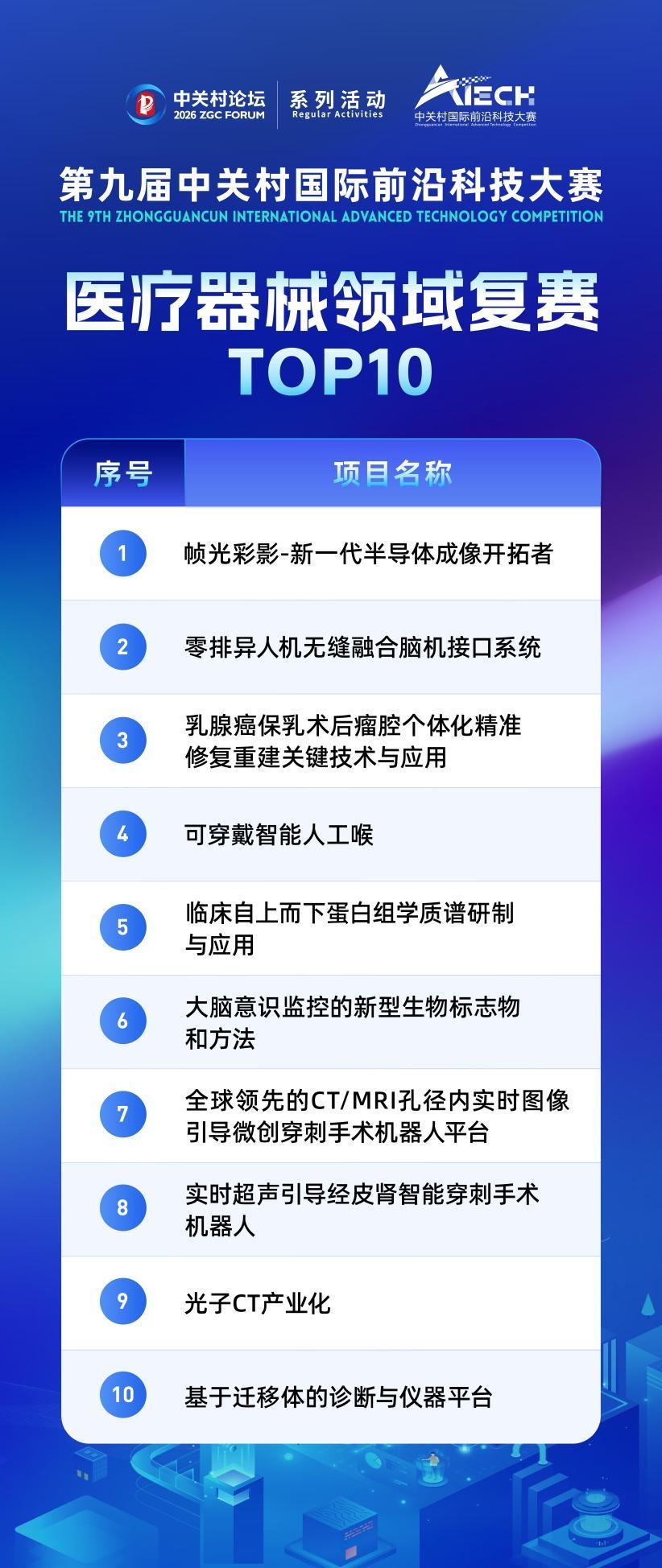 1月20日,2026中關(guān)村論壇系列活動——第九屆中關(guān)村國際前沿科技大賽醫(yī)療器械領(lǐng)域復(fù)賽在中關(guān)村醫(yī)療器械園舉辦,10項創(chuàng)新項目脫穎而出,入圍該領(lǐng)域TOP10。