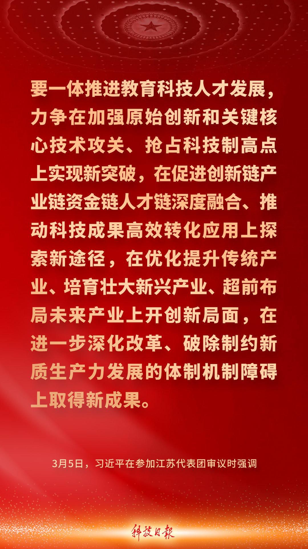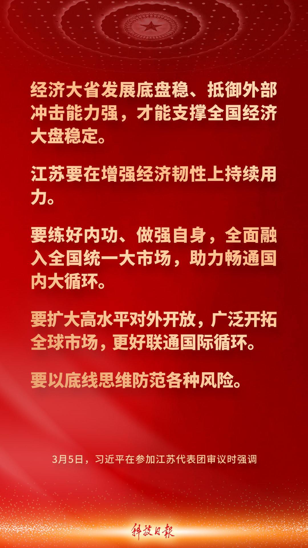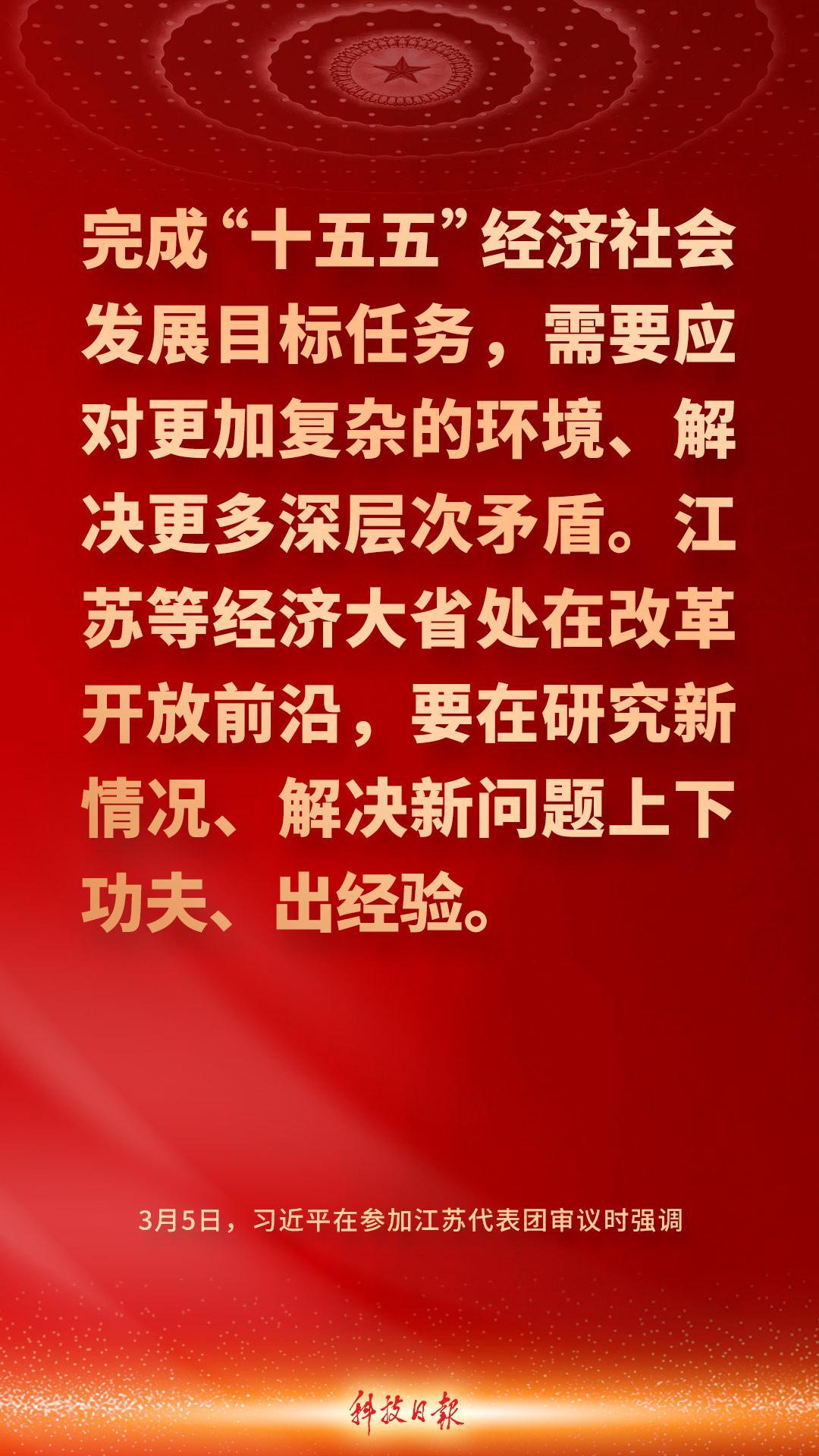 中共中央總書記、國家主席、中央軍委主席習近平5日下午在參加他所在的十四屆全國人大四次會議江蘇代表團審議時強調——