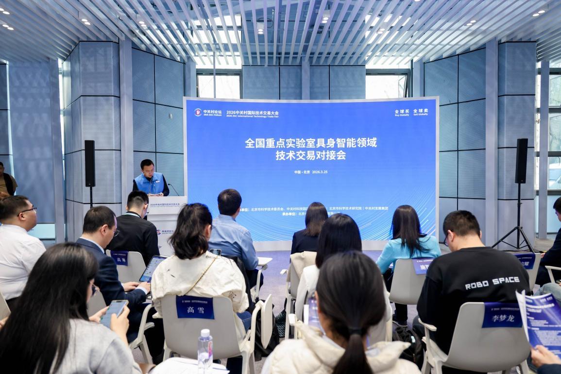 3月25日下午,2026中關(guān)村論壇年會中關(guān)村國際技術(shù)交易大會——全國重點實驗室具身智能領(lǐng)域技術(shù)交易對接會在中關(guān)村國際技術(shù)交易中心舉辦。活動由北京市科學(xué)技術(shù)委員會、中關(guān)村科技園區(qū)管理委員會,北京市科學(xué)技術(shù)研究院,中關(guān)村發(fā)展集團聯(lián)合主辦,北京中關(guān)村科技服務(wù)有限公司承辦。